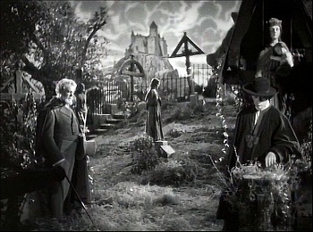 | 時間は過ぎゆき、まずは双子の母が1790年に歿し、まだ10歳前後であろう二人が墓前に佇む。父が亡くなった時には二人は20歳前後でしょうか。それから20年、後に1834年とわかるのですが、兄は領主の地位を継ぎ、弟は10年来城を出ている。墓場の彼方には丘の上にそびえる城が見えます。弟が兄からの手紙に呼び戻されたことから、お話は展開します。 | ![]() |