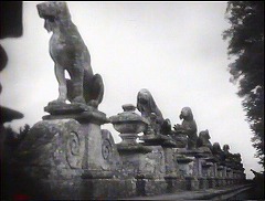 城の外には庭園がひろがっていて、欄干の上には犬や獅子らしき像が並んでいます。これはサンリスのラレ城でのロケによるものでしょう。壺をのせた柱が見えたかと思えば、高い柱の上に犬らしき像がのっているさまが、見上げる角度で映されたりするのでした。 | |||||||||||||||||||||||||||||||