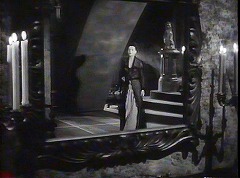 | 城の主であるサンドラ・モルネイ博士が階段を降りてきて、廊下を突っ切り、床から数段高い玄関の扉を開いて伯爵を迎えるという、移動の場面がぞくぞくさせてくれたりするのでした(追補:これは博士の助手が凸凹コンビたちを迎える少し後の場面とごっちゃにしてしまっています)。 | ||||||||||||||||||||||||||||||||