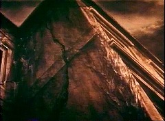 『恐怖の振子』から、今度は近接ショットが用いられます。2つの塔と欄干を見上げたものです。雷つきです。 | ||||||||||||||||||||||||||||||||