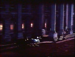 屋外の暗がりの中、やたらと高い列柱の前に馬車が止まります。 | |||||||||||||||||||||||||||||
