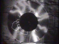 | 実験室には放電はもとより、ユニヴァーサルの作品でお馴染みの回転電光盤も見られます。 | ![]() |