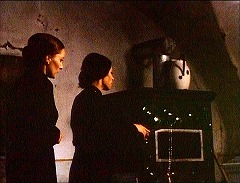 聖少女の詩』はどうなのでしょうか? 他方、『吸血鬼ドラキュラ』とともに、『古城の妖鬼』と『黒い城』はスタジオのセットで撮影されたものと思われます。中古のものを使ったのか、あるいは、何らかの見本に基づいて外見だけそれらしく組み立てたのか。 『吸血鬼ドラキュラの花嫁』でトーストをあぶり、『吸血女地獄』で一度焼却炉代わりに用いられたのを別にすると、目には見えない暖房効果をおくならば、上に挙げた諸例でカッヘルオーフェンはただそこにあるだけでした。お話を進める何らかのきっかけになったとも読めません。 同じ暖房装置でも暖炉なら、『恐怖の振子』をはじめとするロジャー・コーマンのポー連作で何度か見られたように(たとえば→そこや、あそこなど)、暖炉の中からの視線を演出するとか、『血ぬられた墓標』(1960)のように暖炉の奥に隠し扉を設定するといった使い途がありました。カッヘルオーフェンにはそうした機能は認めがたい。 とすると、なぜわざわざ新たに組み立ててまでセットに配したのでしょうか? 当て推量してみるなら、『古城の妖鬼』がルーマニアだかチェコスロヴァキア、『黒い城』がオーストリアあたりを舞台にしていた点からして、ドイツやスイス、あるいはより東の地域を指す印として、カッヘルオーフェンは用いられたのかもしれないと見なすことはできるかどうか。とはいえ上に見ただけでは作例の数があまりに少なきにすぎ、先走るべきではありますまい。 ともあれ、中欧東欧に住む者にとってどんな風に感じられるのか、西欧や米国の住人にとってはどうか、一概に決められそうにありませんし、ましてや極東で生活する者一人一人の反応は見定めようもない(追補:カッヘルオーフェンに慣れ親しんでいれば、その姿を目にしただけで、仮想的な暖房効果を感じるということもあるのかもしれません)。何より本サイトで取りあげたのは数多ある中のごく一部でしかありません。それでいて見落としもあることでしょう。とりあえずは、話の大筋にからむこともなく部屋の隅に居座る、その形状の多様さを面白がり、また別の例に出くわすことを期待するといたしましょう。 |