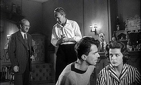 | 冒頭で挙げた『吸血鬼ドラキュラ』や途中で触れた『吸血鬼ドラキュラの花嫁』と同じくジミー・サングスターが脚本を担当した『巨大目玉の怪獣 トロレンバーグの恐怖』(1958、監督:クエンティン・ローレンス →『ダリとカムジャタン』(2021)メモの頁でも触れました)で、カッヘルオーフェンが見られました(右)。左側煮立つ二人の人物の間・奥にあります。スイスのホテルのロビーという設定です。 | ![]() |