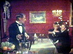 ■ 『ワックス・ワーク』(1988、監督:アンソニー・ヒコックス)は、→こちら(『ドラキュラとせむし女』(1945)の頁の「おまけ」)で触れたように、蠟人形館の各コーナーに飾られた場面を、作中作という形で再現するという映画です。その枠に当たるプロローグ部分で、裕福そうな主人公の家に、他のいくつかの絵とともに、 ヴァン・ダイク《狩猟の際の英国王チャールズ一世》(1635頃、ルーヴル美術館) が飾られていました(約3分、下左)。また作中作の内、サド侯爵のエピソードで、 クールベ、《女と鸚鵡》(1866、メトロポリタン美術館) が奥の壁に掛かっていました(約1時間17分、下右)。 |